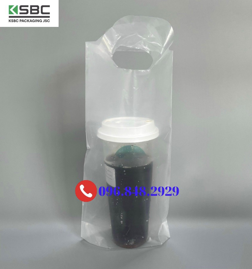 - Túi đựng ly trà sữa/café/sinh tố/ nước ép loại 1 ngăn có cấu tạo đáy bằng để ly có thể đứng vững, không bị đổ. Phía trên tay cầm có đục lỗ hình hột xoài giúp người dùng dễ xách.
