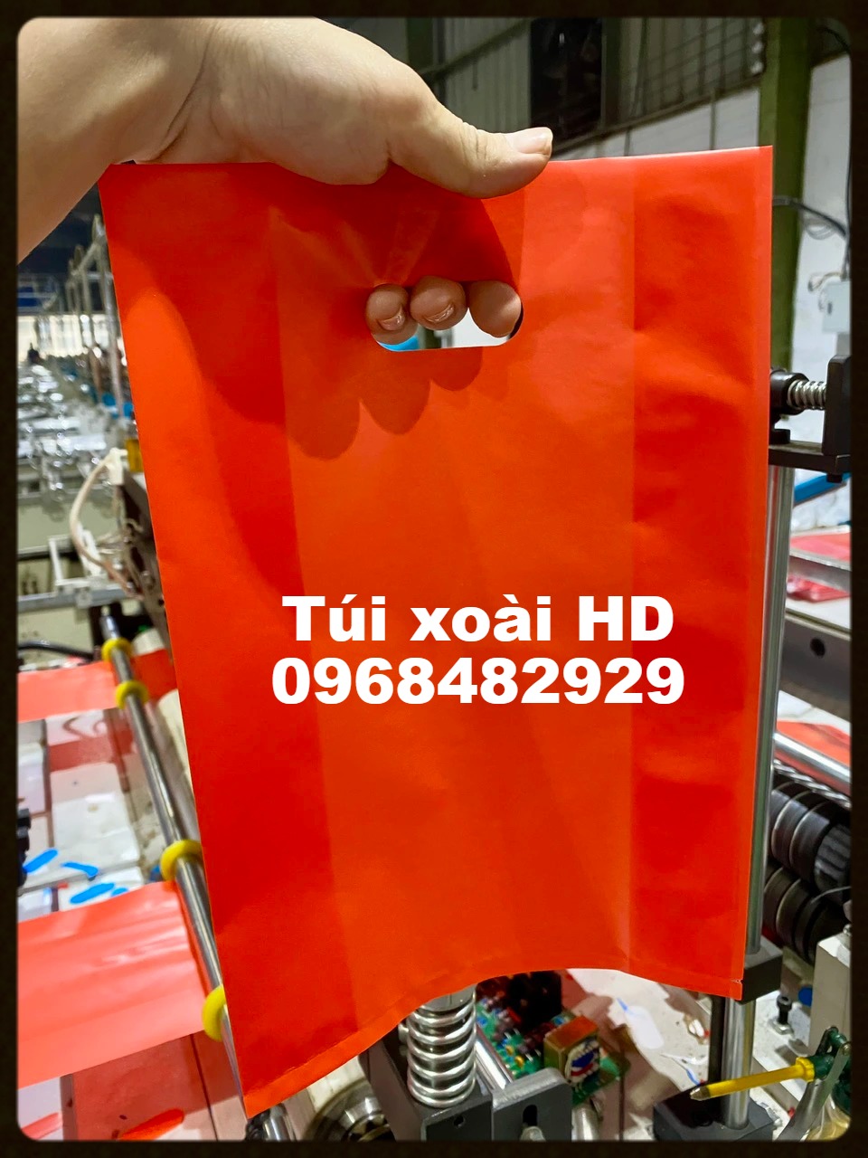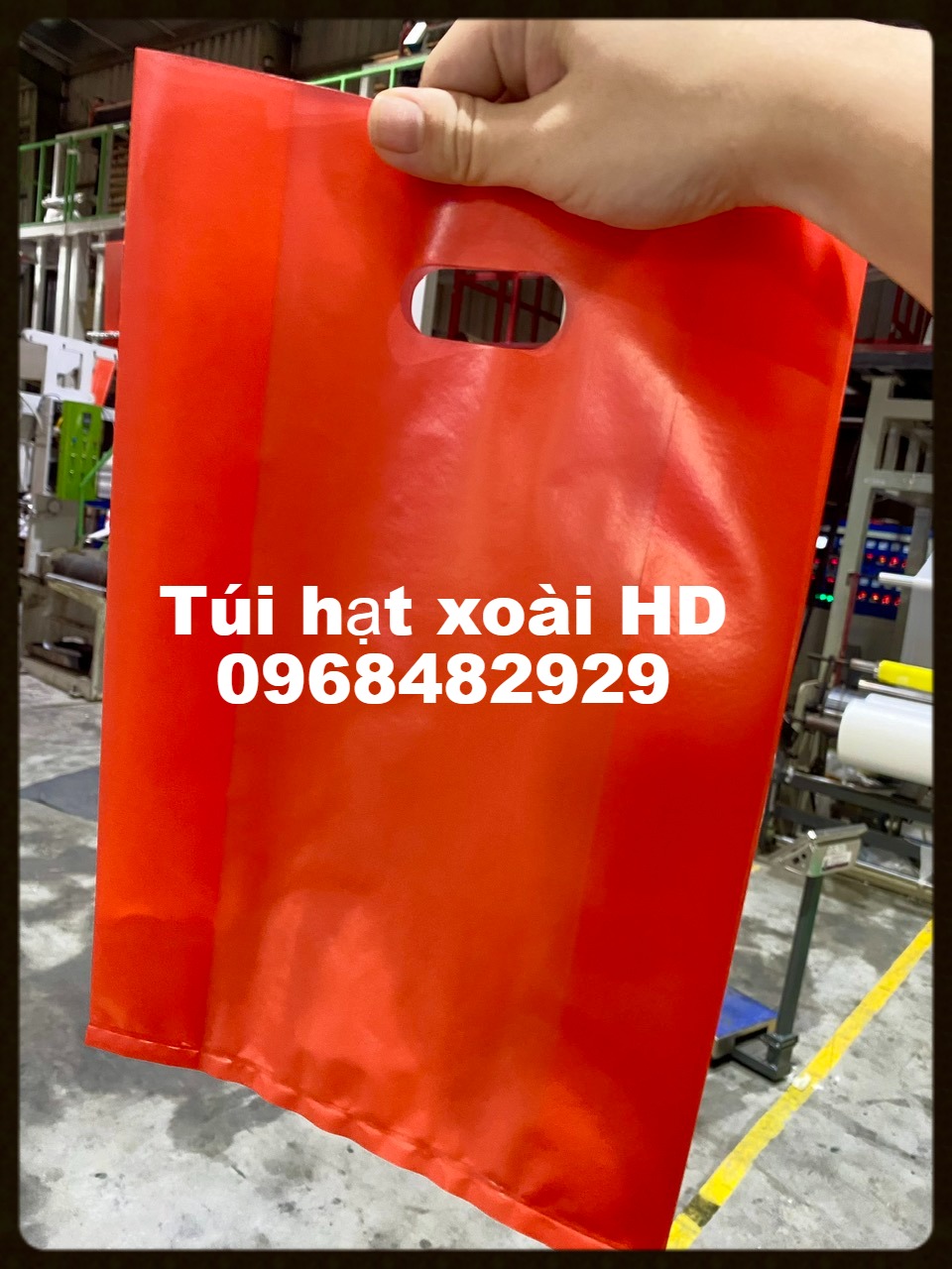 - Túi hạt xoài hay còn gọi là túi HD hạt xoài đỏ được sản xuất từ nhựa HD pha hạt nhựa màu đỏ. Túi có thiết kế hình chữ nhật, miệng túi có đục lỗ hình hạt xoài để làm quai xách tiện lợi.
