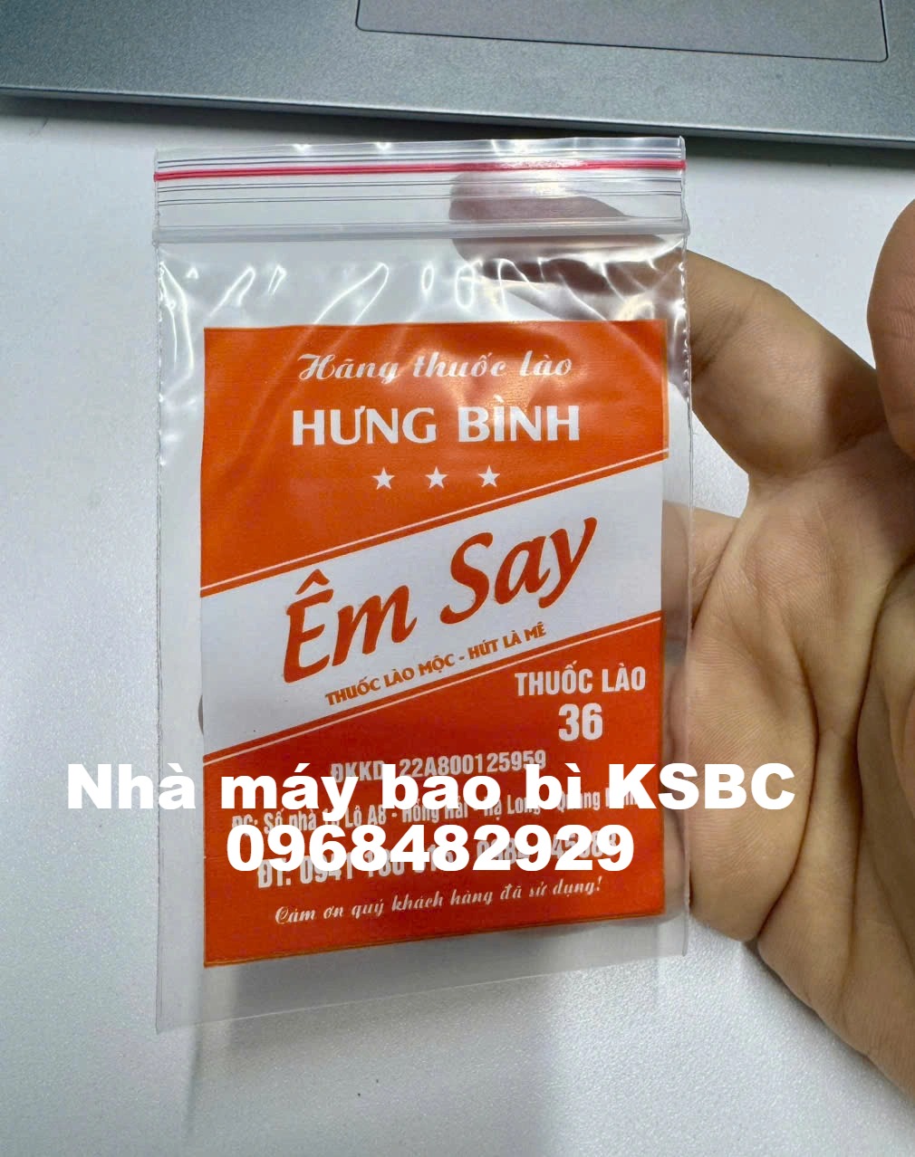 - Bên cạnh việc sản xuất sẵn túi zip thuốc lào màu xanh không in thì nhà máy bao bì KSBC nhận sản xuất túi thuốc lào có in ấn. Kích thước, độ dày và mẫu mã sản phẩm theo yêu cầu của quý khách hàng. Quý khách gọi theo 2 số hotline bên dưới để được phục vụ.